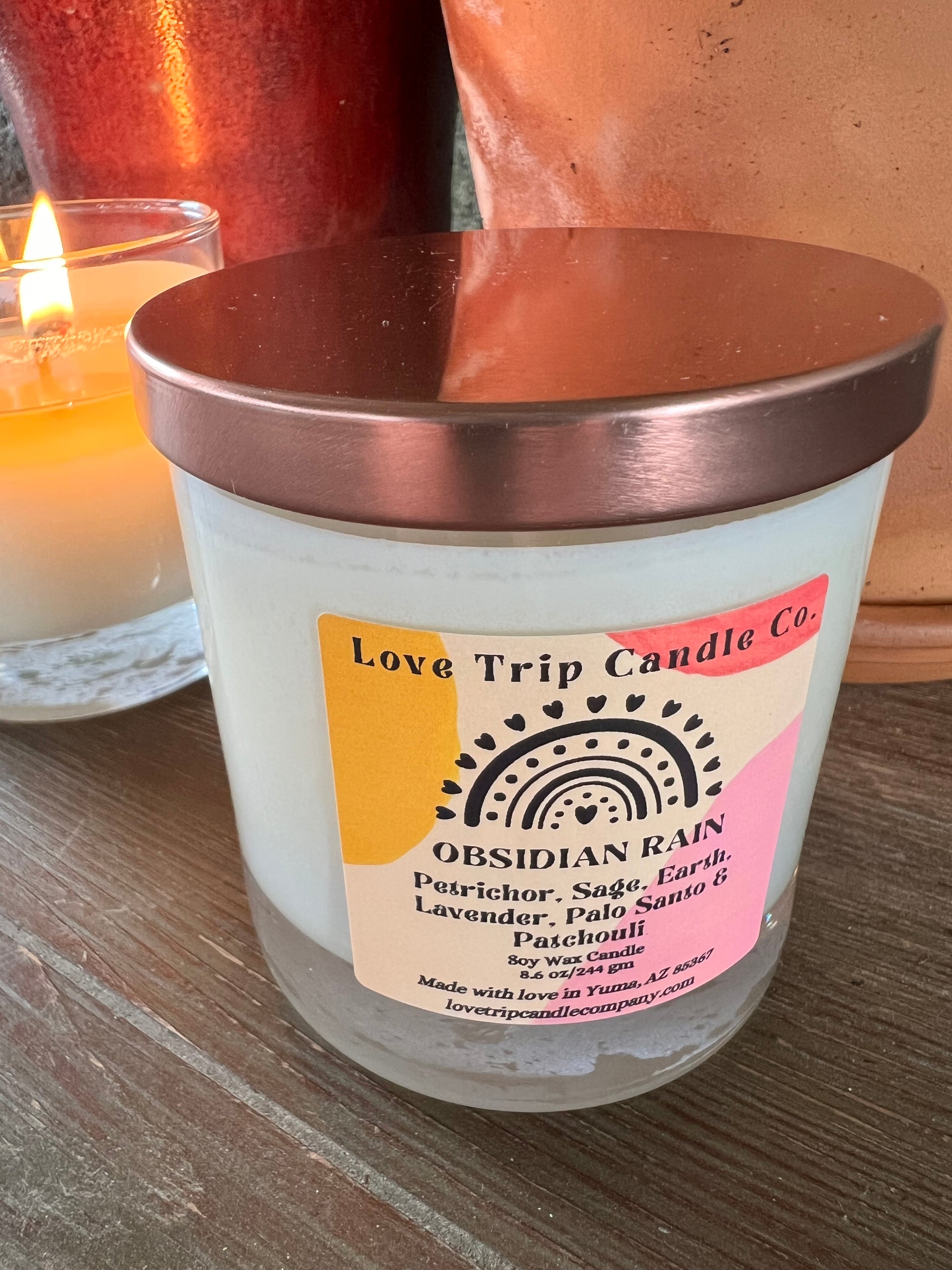Our Sonoran Rain Candle is made of 100% Soy Wax. It feels like the dark, moody skies give way to a soft, cleansing drizzle, awakening the earth and desert with the scent of rain-soaked stone and wild herbs. Sonoran Rain captures the magic of a storm passing over sacred ground—where grounding palo santo and calming sage intertwine with the delicate floral notes of lavender, rose, and chamomile. A whisper of fresh pear adds a touch of brightness, while the deep, earthy essence of petrichor lingers like mist on black volcanic rock. Mysterious yet soothing, this scent invites you to embrace the storm and let the rain wash.